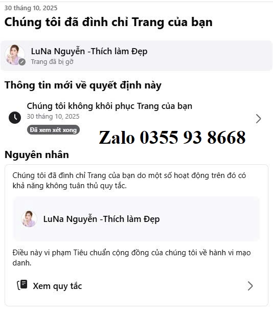 Quý khách cần hỗ trợ mở khóa nick facebook bị vô hiệu hóa – Nick Facebook bị hack vui lòng liên hệ Zalo 0355 93 8668 để đươc tư vấn cụ thể.