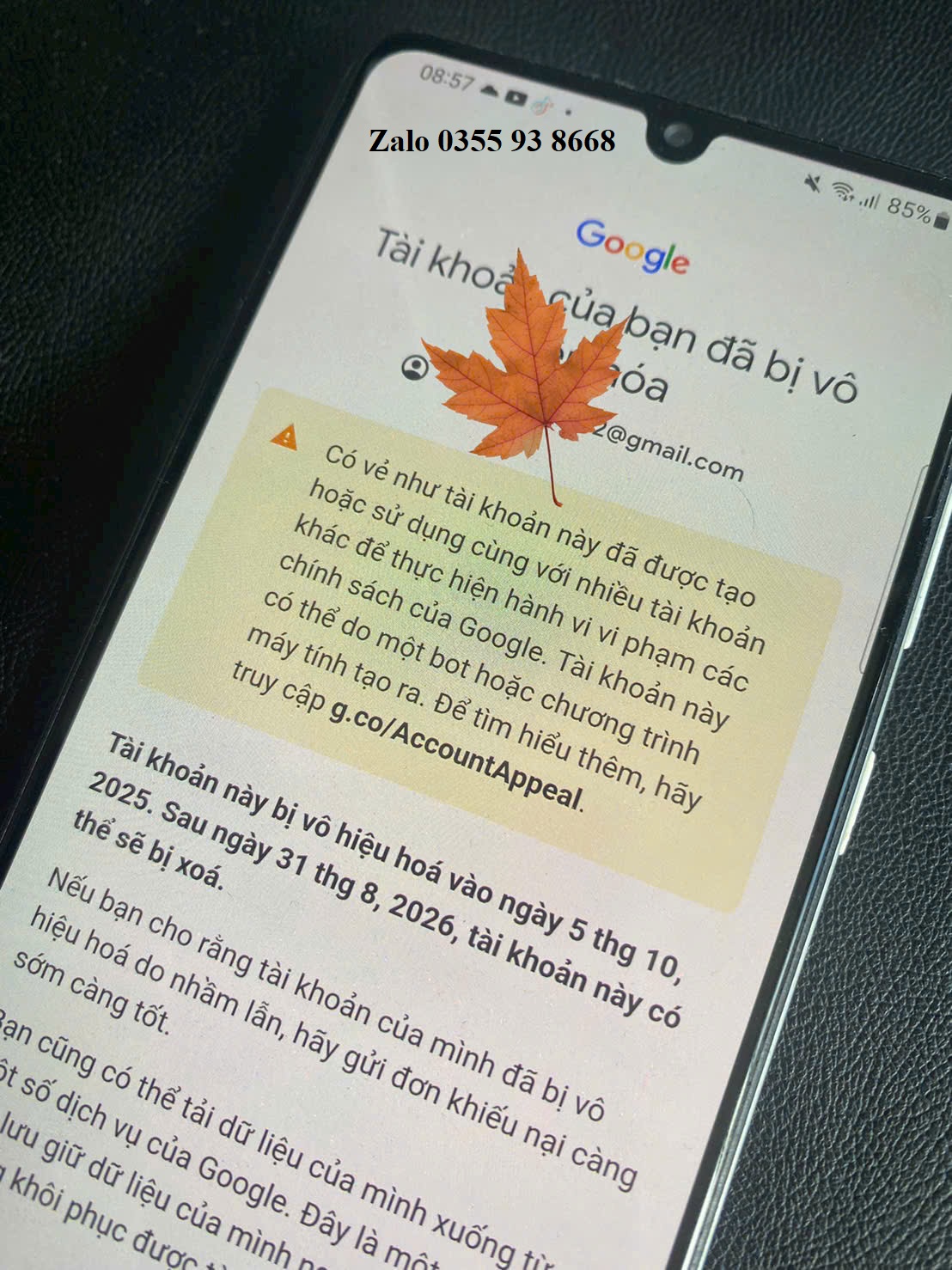Liên hệ ngay chúng tôi để được hỗ trợ kháng nghị tài khoản Google: Zalo 0355 93 8668