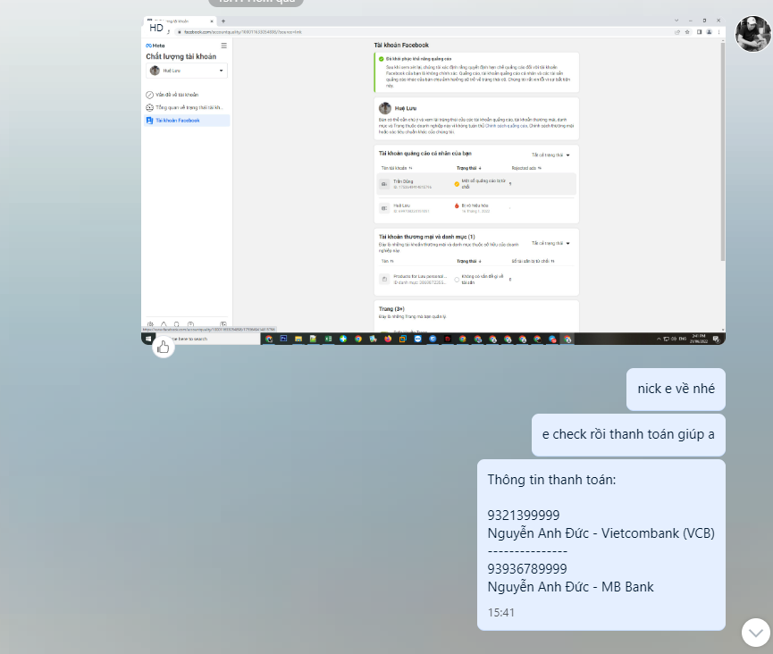 – Cho thuê tài khoản quảng cáo phí từ 2-5%