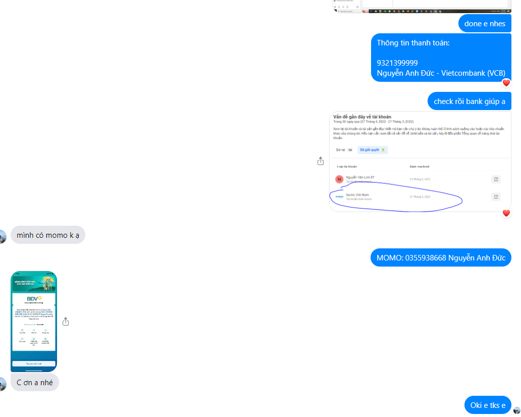 • Ví điện tử: 0355 93 8668 Nguyễn Anh Đức – Momo, Zalo Pay